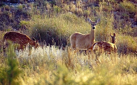 Derington said people like what they see when they come out here. Officials have taken pains to see that the lake was well stocked, the latest coming with 2 million walleye released in April. Since the first stocking of gizzard chad in 1992, a total of more than 2 million blue catfish, channel catfish, bluegill, smallmouth bass, largemouth bass, coppernose bluegill, and walleye have been added. During a recent Texas Parks and Wildlife survey, an 11.8 pound walleye was captured in a net. There is a potential for record fish here. Fishing isn't all Lake Palo Duro has to offer. In addition to the wild turkeys casually strolling in 8900 + acre site, there are mule deer, white-tail deer, an occasional bobcat, and literally hundreds of bird species for bird watchers, including bobwhite and blue quail, geese, ducks, and a number of other water fowl. From November through March, Derington said you can see bald eagles at the lake. The spring and summer attracts Blue Heron and Cormorant. |